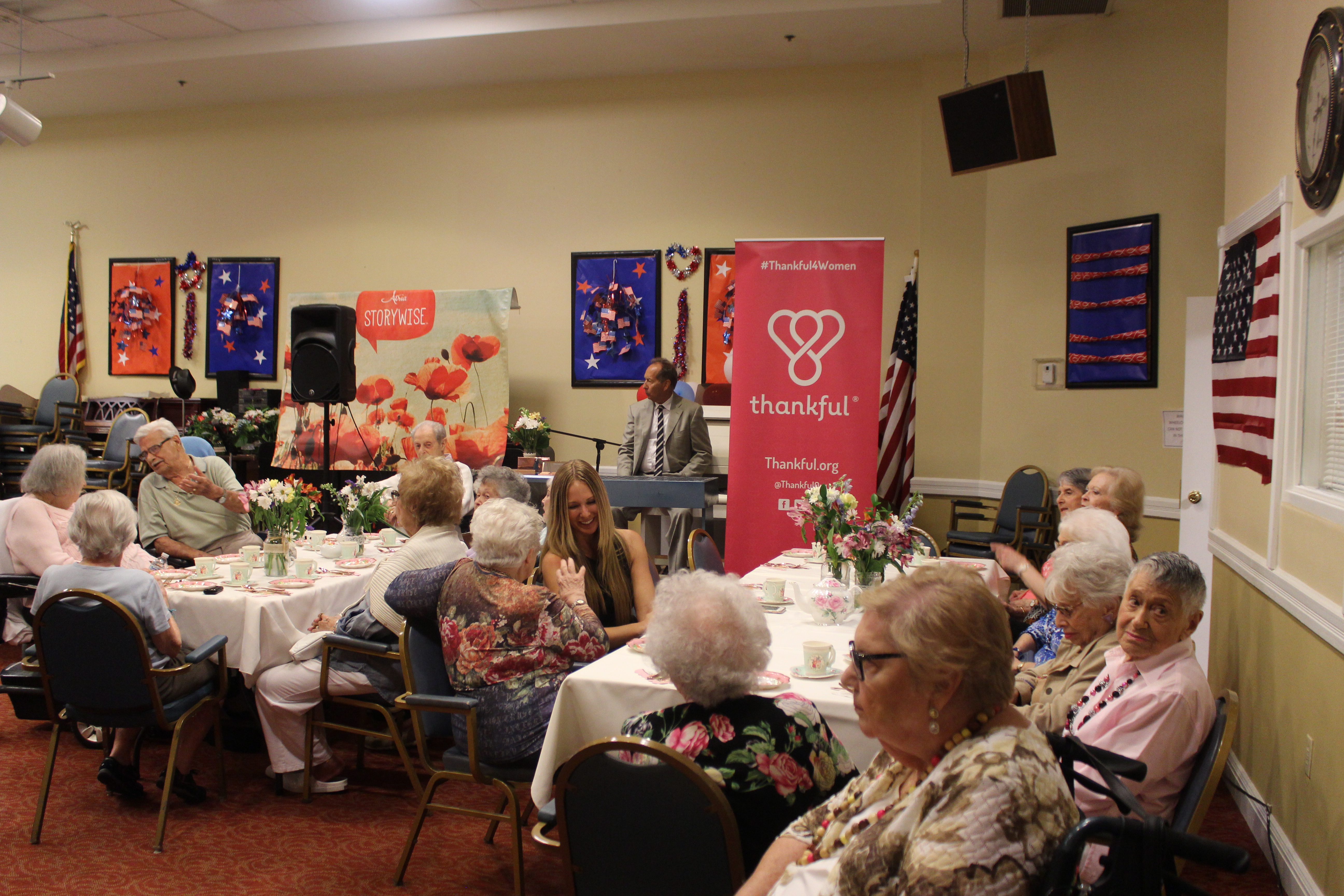 The air in Atria Senior Living buzzed with compliments that the residents exchanged with one another. The smiles and excitement were personally intoxicating for me. Thankful, which is a lifestyle brand founded on the principle of practicing gratitude, took over the assisted living facility to host a private event for their ‘Thankful for Women & Girls campaign.’ Atria residents were the honored guests of a private tea party. But before the live Frank Sinatra performances and tea sandwiches, guests were also invited to receive a makeover from GlamSquad courtesy of Becca Cosmetics. “We want to give them a beautiful experience. These women are trailblazers. They have paved the way for us to live the lives we live today,” the founder of Thankful, Kim McDonnell, said.